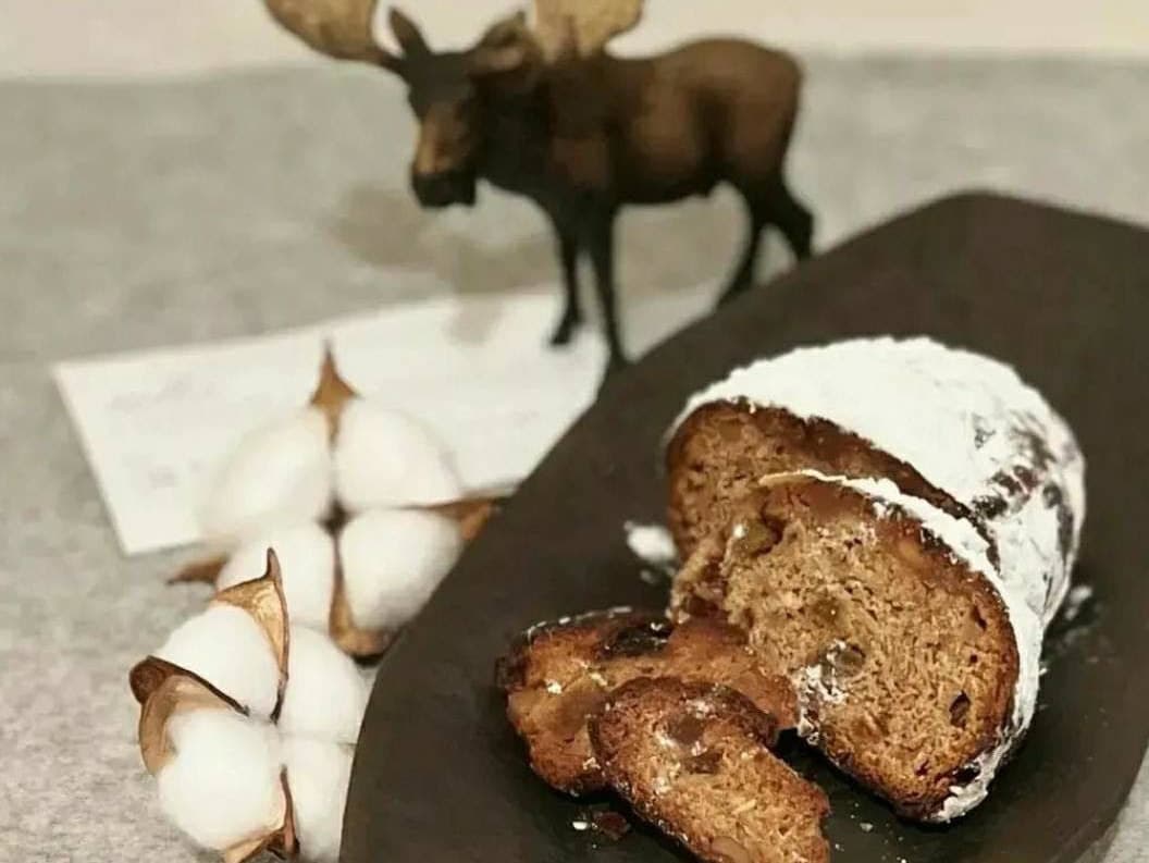 カシューナッツ、クルミ、アーモンド、ドライフルーツをがっつり発酵バターときび糖を練り込んだ生地で焼き上げた甘すぎないシュトレンです。