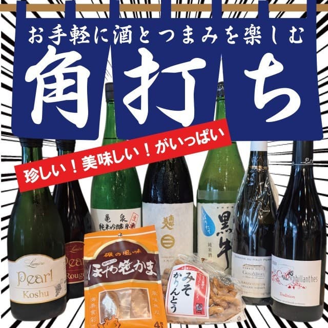 店主厳選の美味しいお酒の角打ち。珍しい銘柄を集めました!一杯づつ好きな銘柄を飲み比べできます。